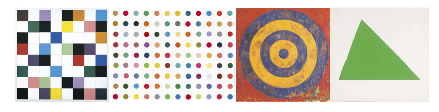 Many artists work with primary shape and color. See below the use of the square, circle and triangle by a few very famous artists (Ellsworth Kelly, Damien Hirst, Jasper Johns and Blinky Palermo).