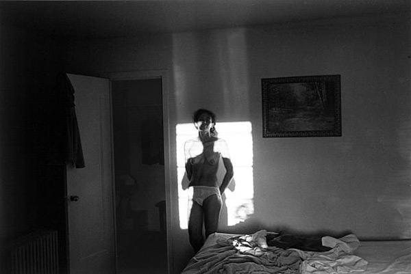 A. Look carefully and you will see that the photographer, Lee Friedlander, has placed his own shadow on to his wife Maria. Friedlander is a master photographer whose compositions frequently involve shadows and reflections. This is a very complex portrait about intimacy, shared experience, and shared destiny.
